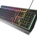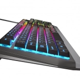 Působivé RGB podsvícení s 11 režimy umožňuje měnit rychlost i intenzitu efektů. V uživatelském režimu si zvolíte jeden z 8 přednastavených RGB barevných tónů pro 7 nezávislých zón a sladíte klávesnici se svou herní sestavou. Stabilitu zajišťují gumové protiskluzové podložky a sklopné nožky pro ideální úhel psaní.