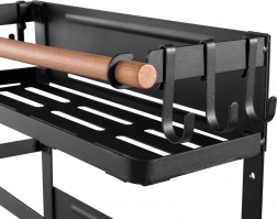 Univerzální šířka pasuje na většinu rolí. Dřevěná tyč zároveň brání vypadnutí uložených věcí z polic.