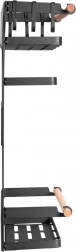 Montáž je otázkou vteřin: tři silné magnety pevně drží na kovových površích, jako je lednice či bok pračky, a to bez jakéhokoli vrtání či nářadí. Široký držák pojme většinu běžných papírových utěrek a šest odnímatelných háčků využijete na hrnky, utěrky nebo kuchyňské pomůcky. Minimalistický černo-dřevěný design se hodí do moderních interiérů a pomáhá šetřit místo v malých kuchyních.