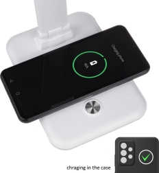 Bezdrátová nabíječka je elegantně integrovaná v základně lampy, což umožňuje rychlé nabíjení vašeho chytrého telefonu, který podporuje bezdrátové nabíjení Qi. Nastavitelný úhel a stabilní základna činí tuto lampu nejen funkční ale i uživatelsky přívětivou.
