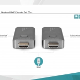 Sada Wireless HDMI Extender umožňuje bezdrátové přenášení video i audio signálů HDMI na vzdálenost až 50 m bez přímého viditelného překážek. Instalace je jednoduchá díky funkci Plug & Play; stačí zapojit a používat. Přenašeč a přijímač lze napájet přes HDMI port zařízení (je potřeba 0,5 A), nebo doplňkově použitím dodaného micro USB kabelu přes USB port notebooku, počítače apod. Díky své kompaktní konstrukci lze přenašeč a přijímač snadno instalovat i v konferenčních místnostech či v domácím prostředí pro rychlou instalaci.