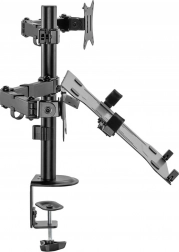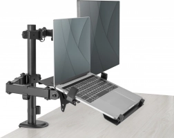 Tento robustní stolní držák umožňuje současně uchytit monitor do 32" (max. 9 kg) a notebook do 15,6" (max. 4 kg), a to s důrazem na ergonomii, přehlednost a úsporu místa. Díky rychloupínací VESA destičce (quick release) je montáž i demontáž rychlá a bezpečná.