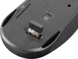 Bezdrátová komunikace na frekvenci 2.4GHz umožňuje pohodlné používání až na vzdálenost 10 metrů a myš má speciální úložiště na USB přijímač, které je vhodné na cesty.