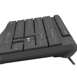 - Efektivní a tichá práce: Ergonomická klávesnice má plochý profil kláves pokrytých odolnou vrstvou proti opotřebení a membránový mechanismus snižující hlučnost úhozů.