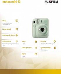 Zachyťte vzpomínky během vteřin s kompaktním a stylovým fotoaparátem INSTAX Mini 12 v zelené barvě. Snadné ovládání, okamžitý tisk fotografií a integrovaný blesk z něj dělají ideálního společníka na výlety, oslavy i každodenní momenty.