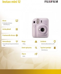 FUJIFILM Instax Mini 12 je skvělá volba pro všechny, kdo chtějí mít své vzpomínky hned v ruce. Díky jednoduchému ovládání a spolehlivému instantnímu tisku je ideální pro začátečníky i kreativní nadšence. Stylové pastelové provedení ve fialové barvě podtrhne váš osobitý styl.