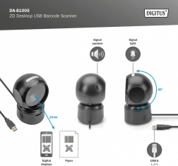 Automatický IR senzor aktivuje skener, jakmile je kód v zorném poli, a vizuální i zvuková signalizace potvrzuje úspěšné načtení. Anti-interference zajišťuje odolnost proti okolnímu světlu, zatímco otočná hlava a kompaktní tělo šetří místo na stole.