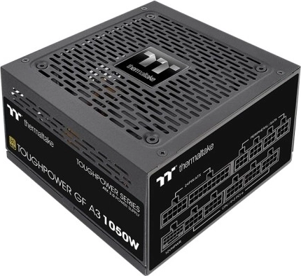 Spolehlivý a tichý zdroj pro výkonné PC sestavy: Thermaltake Toughpower GF A3 s výkonem 1050 W nabízí 80 PLUS Gold účinnost, plně modulární kabeláž, podporu ATX 3.0 a PCIe Gen5 (12VHPWR) a tichý 120mm ventilátor pro stabilní napájení moderních komponent.