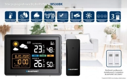 Moderní meteorologická stanice BLAUPUNKT WS30BK měří vnitřní i venkovní teplotu a vlhkost, zobrazuje absolutní atmosférický tlak, trendy, grafickou předpověď na 12–24 hodin, má hodiny s budíkem a kalendář a podporuje až 3 bezdrátové senzory. Velký barevný LCD displej se ztlumením zajistí perfektní čitelnost ve dne i v noci.