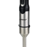 Ruční mixér PRIME3 je všestranný pomocník pro každodenní vaření. Silný a přitom tichý DC motor s výkonem 1200 W spolu s čtyřnásobným nerezovým nožem zaručuje hladké krémy, jemná smoothie i rychlé pyré. Plynulá regulace rychlosti doplněná o tlačítko turbo dává plnou kontrolu nad výsledkem.