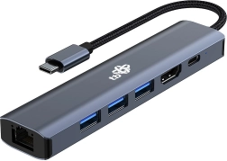 HUB obsahuje 3x USB 3.0 (5Gbps), HDMI (4K 30Hz) a RJ-45 (1000 Mbps).