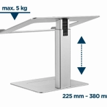 Erogonomický stojan pro notebooky do velikosti 15,6 palce s nastavitelnou výškou pro pohodlnější práci. Elegantní stříbrná konstrukce z kvalitního hliníku poskytuje stabilitu a bezpečí.