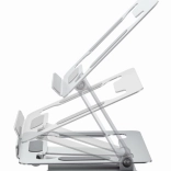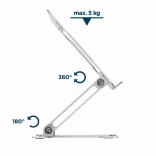 Kompaktní a odolný stojan na notebook z hliníku pro zařízení do 15,6″ zlepší ergonomii práce a chlazení. Nabízí plynulé nastavení výšky a úhlu, stabilní konstrukci se silikonovými podložkami a otevřenou platformu pro lepší ventilaci. Díky skládacímu designu se snadno přenáší i skladuje.