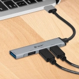 Hub je okamžitě připraven k použití – stačí zapojit a pracovat, žádné ovladače nejsou potřeba. LED indikátor přehledně ukazuje stav zařízení. Kompaktní rozměry a stříbrné hliníkové provedení skvěle ladí s většinou notebooků a zajistí dlouhou životnost i při každodenním používání.