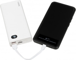 Užívejte si svobodu bez zásuvky. Tato kompaktní a odolná powerbanka s velkou kapacitou 20 000 mAh spolehlivě dobije váš telefon, tablet i sluchátka. Díky podpoře rychlého nabíjení power delivery (PD) a quick charge (QC) doplníte energii opravdu rychle, a to skrze univerzální porty USB‑C a USB‑A. Přehledný LCD displej přesně ukáže zbývající kapacitu, takže vždy víte, kdy je čas ji dobít.