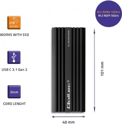 Obal pro M.2 SSD značky Qoltec je navržen tak, aby byl vysoce kompatibilní s různými typy SSD, včetně NVMe a SATA. Je určen pro disky s M-Key a B+M-Key o velikostech 2230, 2242, 2260 a 2280.