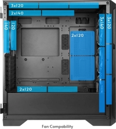 Integrovaný ARGB hub umožňuje synchronizaci podsvícení s vaší základní deskou (MB sync) a nabízí regulaci rychlosti ventilátorů pro ideální rovnováhu mezi výkonem chlazení a nízkou hlučností. Díky velkorysému vnitřnímu prostoru poskládáte high-end konfiguraci s dlouhými grafikami, vysokými věžovými chladiči i vodním chlazením.