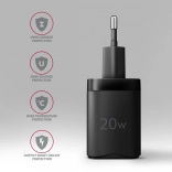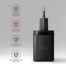 Kompaktní tělo s příjemným tvarem a nízkou hmotností je ideální do kapsy i cestovní tašky. Funkce WIV (Wide Input Voltage) zajistí spolehlivé použití v různých zemích, pokročilé řízení AIC rozpozná připojené zařízení a zvolí optimální proud a napětí. O bezpečnost se stará sada ochran OCP/OVP/OTP/OSP a stabilní režimy CV/CC.