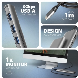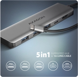 Rozšiřte možnosti svého moderního notebooku jedním kabelem. Tento víceportový USB‑C hub nabídne vysokorychlostní přenosy přes USB 3.2 Gen 1 (5 Gb/s), plynulé zobrazení přes HDMI až 4K/30 Hz a současné napájení přes USB‑C PD 100 W. Díky 1metrovému přívodnímu kabelu máte volnost v umístění na pracovním stole.