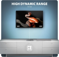 - HDR (10bit), Hot‑Plug‑Detect, TMDS, HDCP 1.4/2.3; 2kanálový zvuk až 48 kHz/24‑bit dle zdroje/koncového zařízení