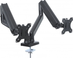 Dvojitý držák na monitory ART UM-116 je navržen pro monitory s úhlopříčkou 13 až 32 palců a váhou od 2 do 9 kg. Díky plynové pružině můžete polohu monitorů upravit jednoduše jedním prstem, přičemž držák zůstává pevně na místě, a to i při otáčení obrazovky díky funkci PIVOT s možností otočení o 360 stupňů.