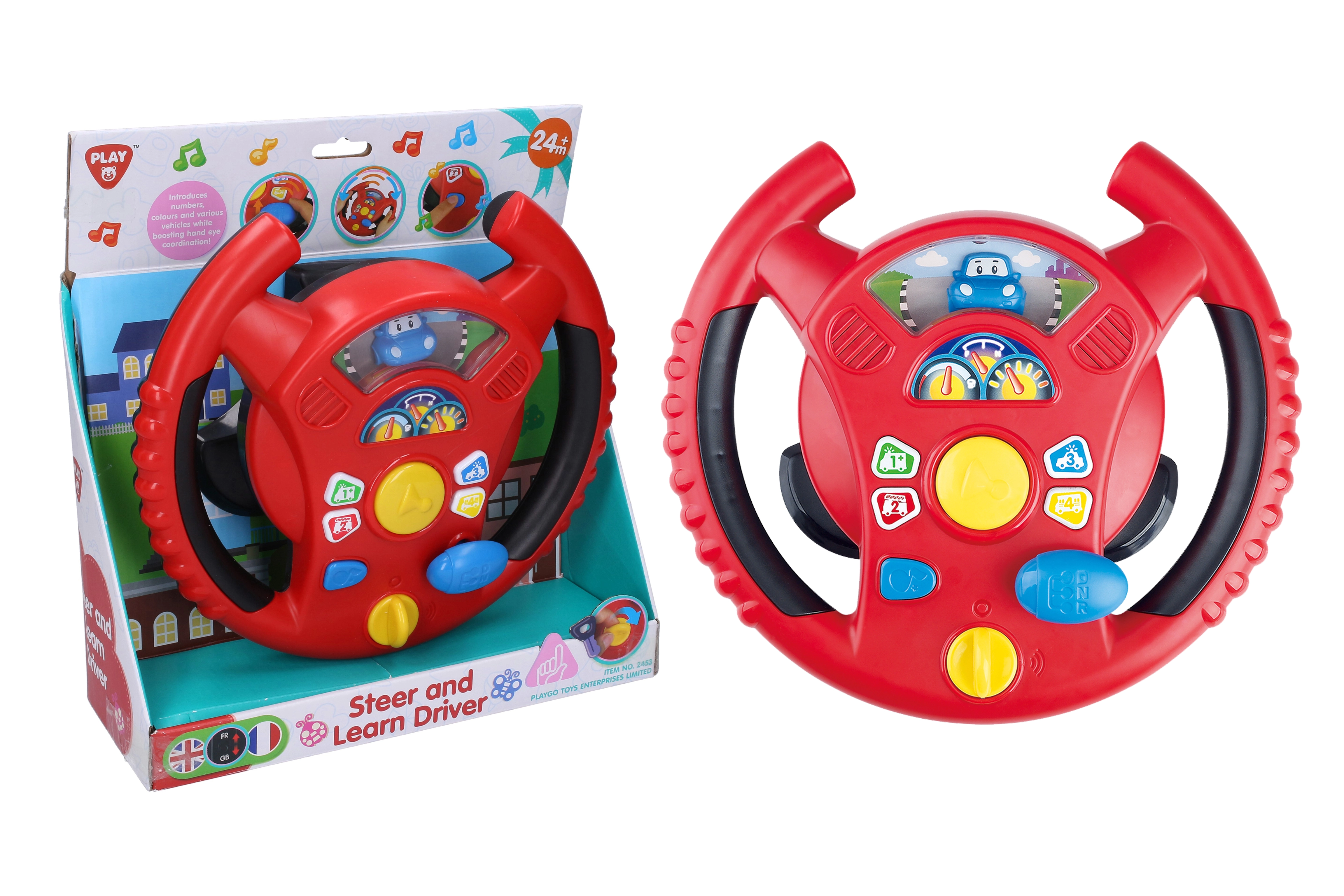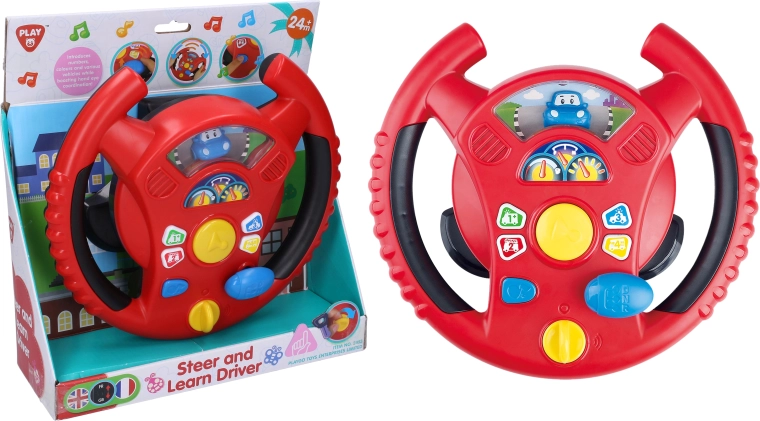 Interaktivní volant Playgo přináší dětem zábavnou hru na řízení v mini městě. Otočný spínač na spodní straně volantu slouží k zapnutí, uprostřed najdete klakson, napravo řadicí páku pro zvuky jízdy a na věnci volantu malá tlačítka s tóny a melodiemi. Děti si užijí realistické efekty, které připomínají opravdové auto, a přitom rozvíjejí koordinaci a představivost.