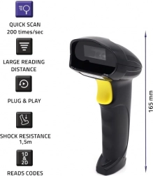 Díky rozhraní Plug&Play funguje ihned po připojení přes USB, bez instalace softwaru. Rychlost až 200 skenů/s, snadné čtení pod různými úhly a odolnost vůči pádům do 1,5 m dělají z této čtečky spolehlivého pomocníka pro inventury, příjem zboží i práci u pokladny.