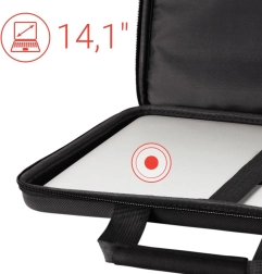 Tato černá taška na notebook 14,1″ kombinuje elegantní vzhled s promyšlenou funkčností. Odolná konstrukce chrání váš notebook před poškrábáním a nečistotami, zatímco vnitřní elastický pásek se suchým zipem jej bezpečně udrží na místě i při přesunech.