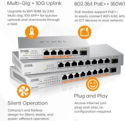 Zyxel XMG-108 je ideální volbou pro hráče, tvůrce obsahu i malé kanceláře. Poskytuje plnou 2,5G propustnost na všech osmi metalických portech a navíc 10G SFP+ pro připojení NAS, serveru či uplinku do rychlé páteře. Nasazení je otázkou okamžiku – jednoduše zapojíte a jedete.