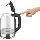 Objevte elegantní skleněnou konvici, která z vaření vody udělá stylový rituál. Tělo z borosilikátového skla vyniká vyšší odolností, zatímco LED podsvícení promění každý var v efektní podívanou. Konvice o objemu 1,7 litru je ideální pro domácnosti i kanceláře.