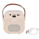 Lehký reprobox s hnědým koženým popruhem umožňuje snadnou přepravu a je ideální pro použití doma i na cestách.