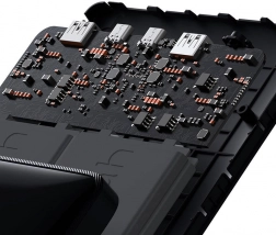 Dva USB‑C a dva USB‑A umožní nabíjet až čtyři zařízení současně. Technologie Baseus BPS II chytře rozděluje výkon a sady ochran brání přebití, přehřátí i zkratu.