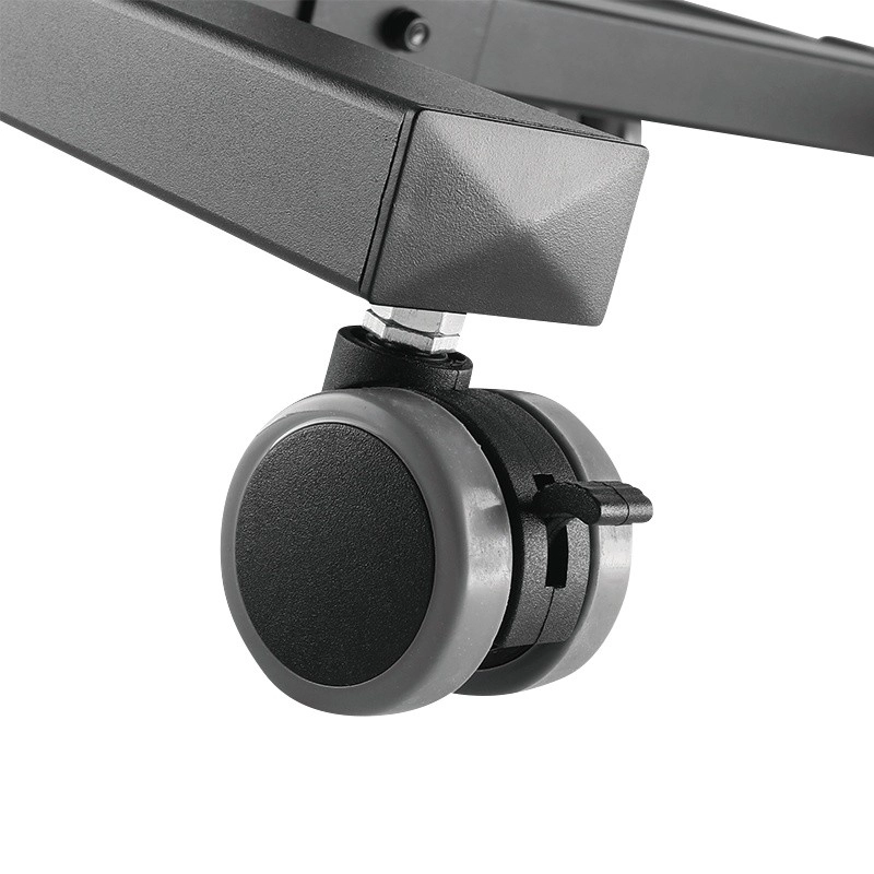Robustní konstrukce stojanu slouží jako bezpečný a stabilní podklad pro zařízení, která na něj umístíte. Je vyroben z kvalitní oceli, která zaručuje dlouhou životnost a odolnost proti poškození. Stojan je vybaven dvojicí pevných platforem, které snadno unesou váhu projektoru a notebooku.