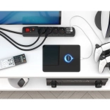 Promyšlená konstrukce zahrnuje organizér kabelu na spodní straně a úchyty pro montáž na stěnu či nábytek, vodorovně i svisle. Podsvětlené USB porty usnadní připojení i v šeru a splnění požadavků EMC znamená, že nabíječka neruší ostatní elektroniku.