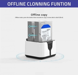 Tato stanice nabízí automatizované klonování dat buď prostřednictvím USB nebo v offline módu. Stačí vložit disky do příslušných portů, zapnout napájení a jedním stisknutím tlačítka COPY začít proces klonování.