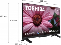 Tato 32" LED televize TOSHIBA kombinuje elegantní štíhlé provedení s kvalitním obrazem a chytrou výbavou pro každodenní zábavu. Díky HD ready rozlišení, vylepšenému podání barev a širokým možnostem připojení se skvěle hodí pro sledování TV vysílání, streamování i hraní.
