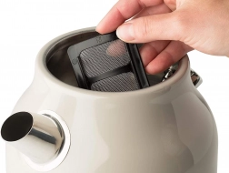 Vyjímatelný a omyvatelný filtr zachytí nečistoty. Náhradní filtr v balení prodlužuje životnost konvice.