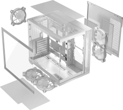 Přední i boční panel z tvrzeného skla umožní dokonale vystavit grafiku, RAM i chlazení. Ideální pro buildy s ARGB podsvícením a pečlivým cable-managementem.