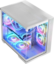 Volcano Panorama Apex ARGB 5F je atraktivní midi tower pro milovníky čistého designu a výkonného chlazení. Dva skleněné panely z tvrzeného skla dokonale vystaví na odiv vaše komponenty, zatímco pětilistá sestava ARGB ventilátorů s přibaleným kontrolérem až pro 9 ventilátorů zajistí skvělý průtok vzduchu bez zbytečných kompromisů.