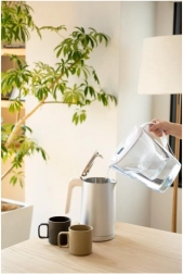 Celkový objem 3,5 l (cca 2,4 l celková kapacita konvice a 1,4 l filtrované vody v jedné náplni) pokryje celodenní pitný režim a přípravu nápojů i jídel.