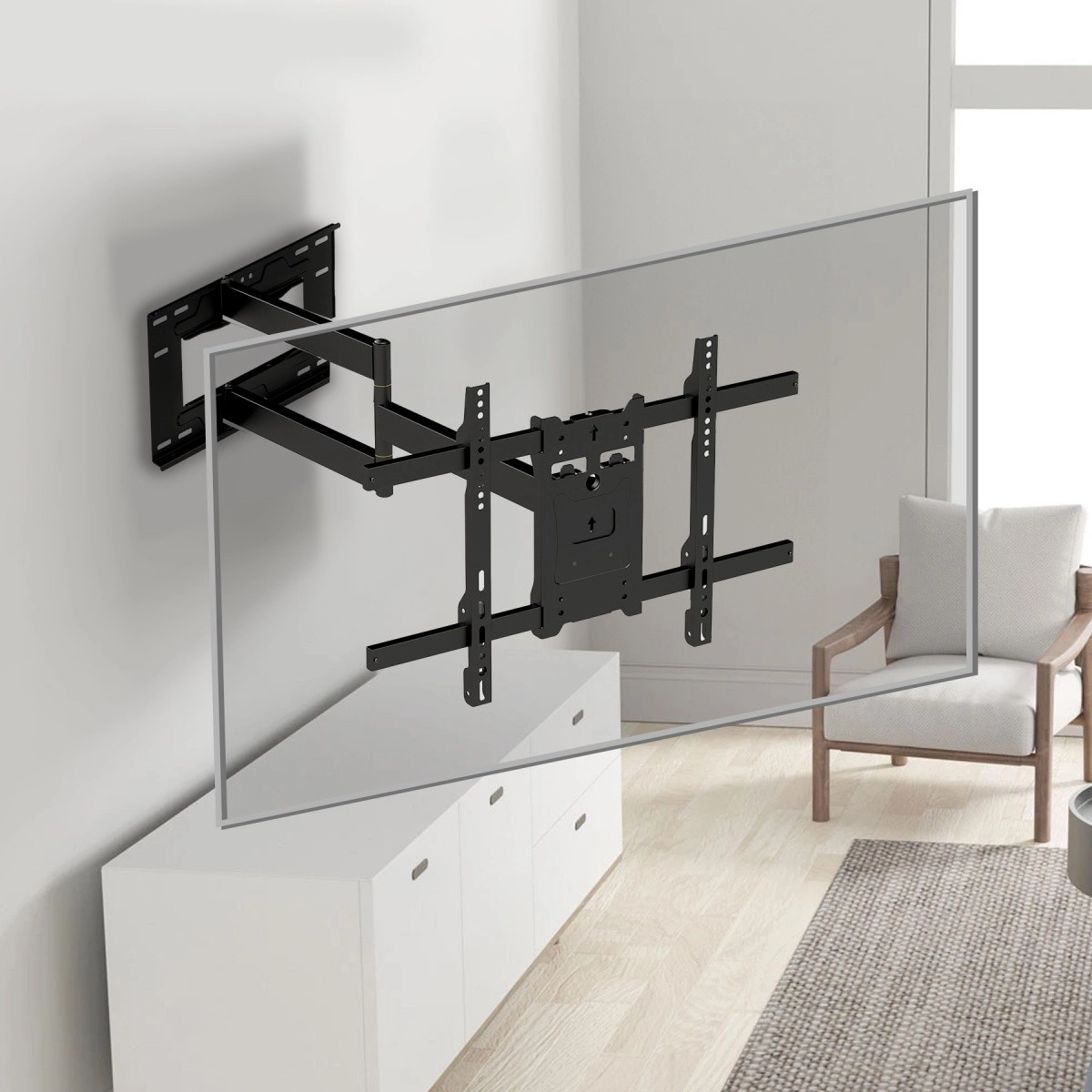 Držák nabízí možnost naklánění v úhlu +5° až -10° a otáčení televize po instalaci, což zajišťuje ideální pozorovací úhel.