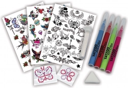 Vytvořte své vlastní originální tetování nebo si zkuste přetvořit oblíbené motivy. Sada je snadno použitelná a zábavná pro každou příležitost.