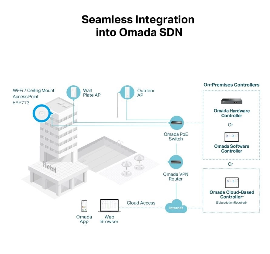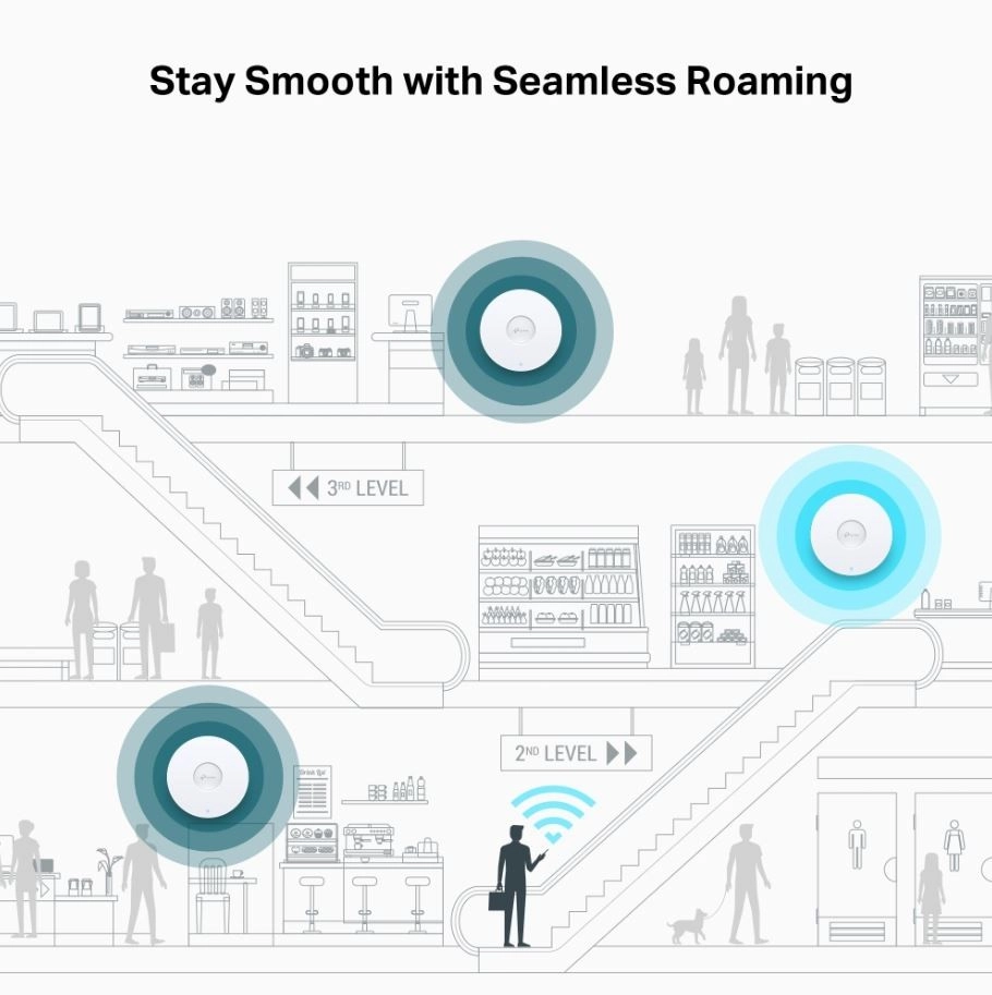 Zařízení podporuje centralizovanou správu, síť mesh a pokročilé možnosti nasazení, takže snadno rozšíříte pokrytí a udržíte jednotnou správu celé infrastruktury. Skvělá volba pro kanceláře, školy, hotely i retail.