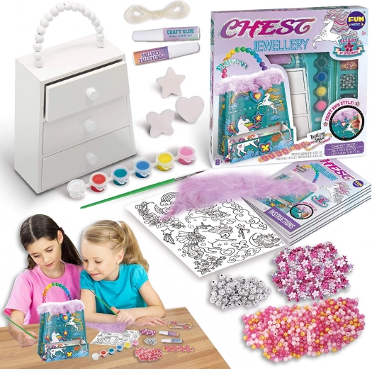 Vytvořte si originální dřevěnou šperkovnici o rozměrech 20x15x5,5 cm pomocí této sady, která zahrnuje vše potřebné. Tvořivost nezná mezí, takže si ji můžete ozdobit podle vlastní fantazie. Barevné korálky a další ozdoby přidají vašemu výtvoru na jedinečnosti.
