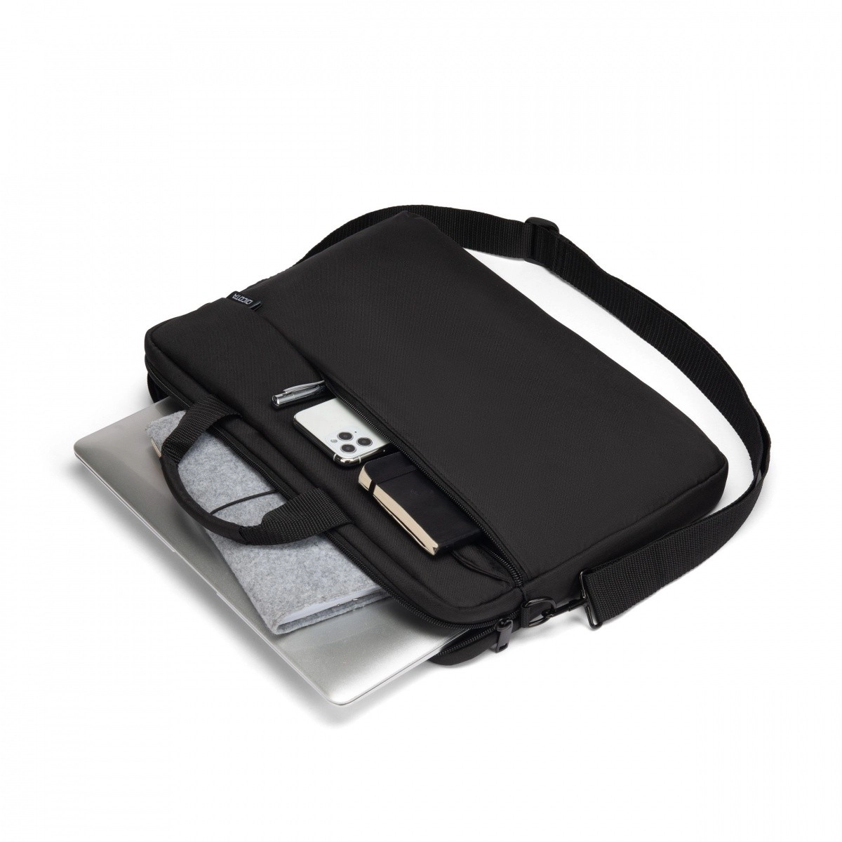 Lehké a odolné pouzdro Slim bezpečně ochrání váš notebook na cestách. Hlavní komora s mimořádně silným polstrováním chrání zařízení před nárazy a otřesy, zatímco přední kapsa na zip udrží telefon, vizitky a psací potřeby vždy po ruce. Pro pohodlné nošení nechybí odnímatelný a nastavitelný ramenní popruh ani pevné madlo.