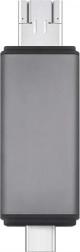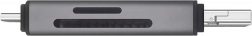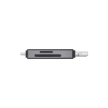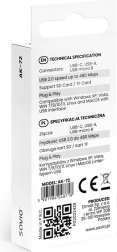 Čtečka je vybavena třemi typy konektorů: USB-C, USB-A a micro USB, což umožňuje připojení k široké škále zařízení.