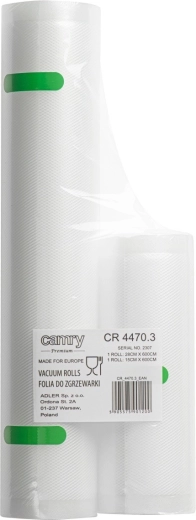 Univerzální vakuové fólie pro domácí i profesionální použití zajistí dlouhodobou čerstvost potravin, hermetické uzavření s odsátím vzduchu a jsou vhodné pro mikrovlnnou troubu i vaření Sous Vide. Kompatibilní s modely CAMRY CR 4470, ADLER AD 4484, MESKO MS 4492 a dalšími svářečkami podobných rozměrů.