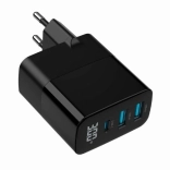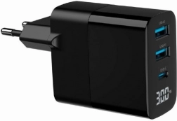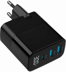 Tato výkonná a přitom kapesně kompaktní nabíječka využívá moderní GaN technologii pro vyšší účinnost, nižší zahřívání a menší rozměry. Díky kombinaci 1× USB‑C a 2× USB‑A snadno nabijete více zařízení současně – od smartphonů a tabletů až po sluchátka či powerbanky.