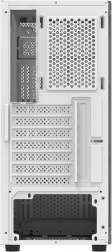 Bílá skříň s čistými liniemi a bočnicí z temperovaného skla elegantně vystaví vaše komponenty a RGB efekty. Ideální volba pro herní i pracovní sestavy.