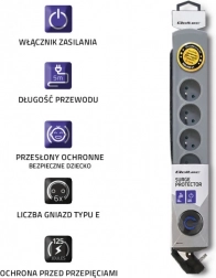 Zajišťuje bezpečnost vašich zařízení díky vestavěným přepěťovým ochranám, které chrání před vysokým napětím či dětskými zásahy.